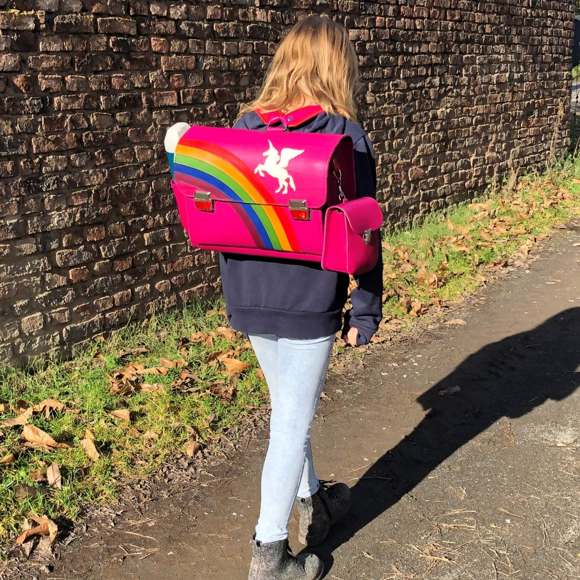 - Wir fertigen unsere Ranzen, im Quer- oder Hochformat, der Innenraum ist praktisch aufgeteilt und bietet genügend Platz für Schulbücher, Dokumente und persönliche Gegenstände.