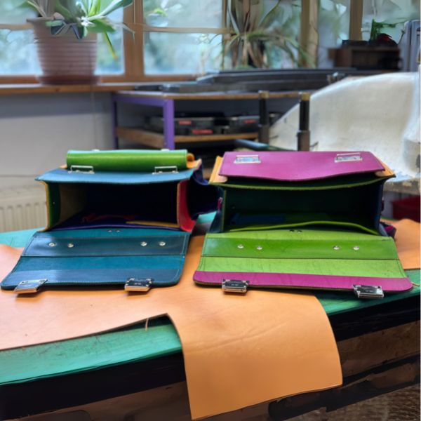 - Die Ranzen sind aus pflanzlich gegerbtem Leder gefertigt.