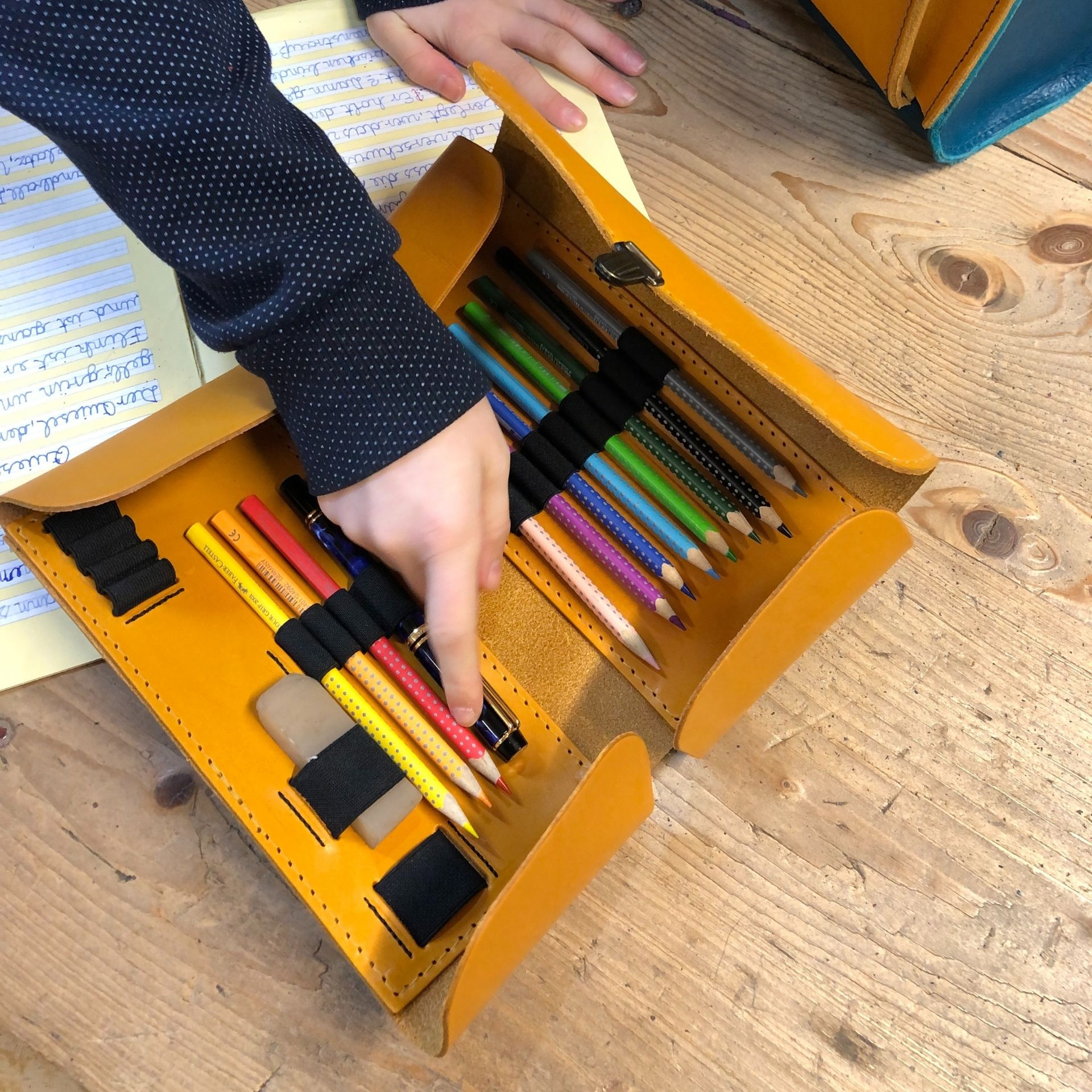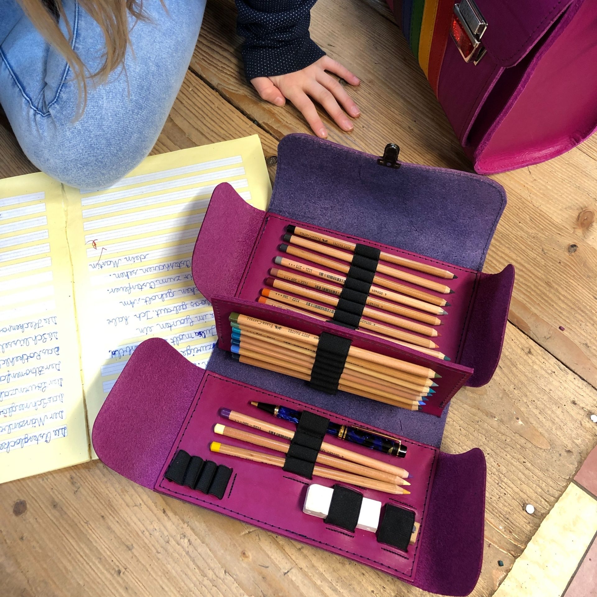 Unsere Schulmäppchen aus festem Blankleder bieten Platz für 12 oder 28 Stifte und Zubehör wie Spitzer, Patronen und vieles mehr.