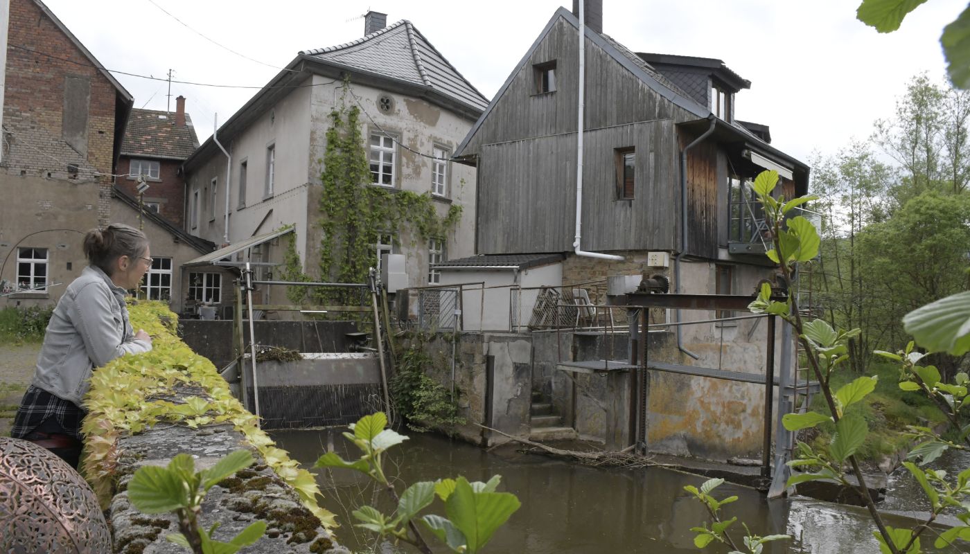 Wir decken unseren Energiebedarf mit selbst erzeugtem Strom aus einer Wasserturbine, so werden alle Taschen mit Strom aus Wasserkraft genäht.
